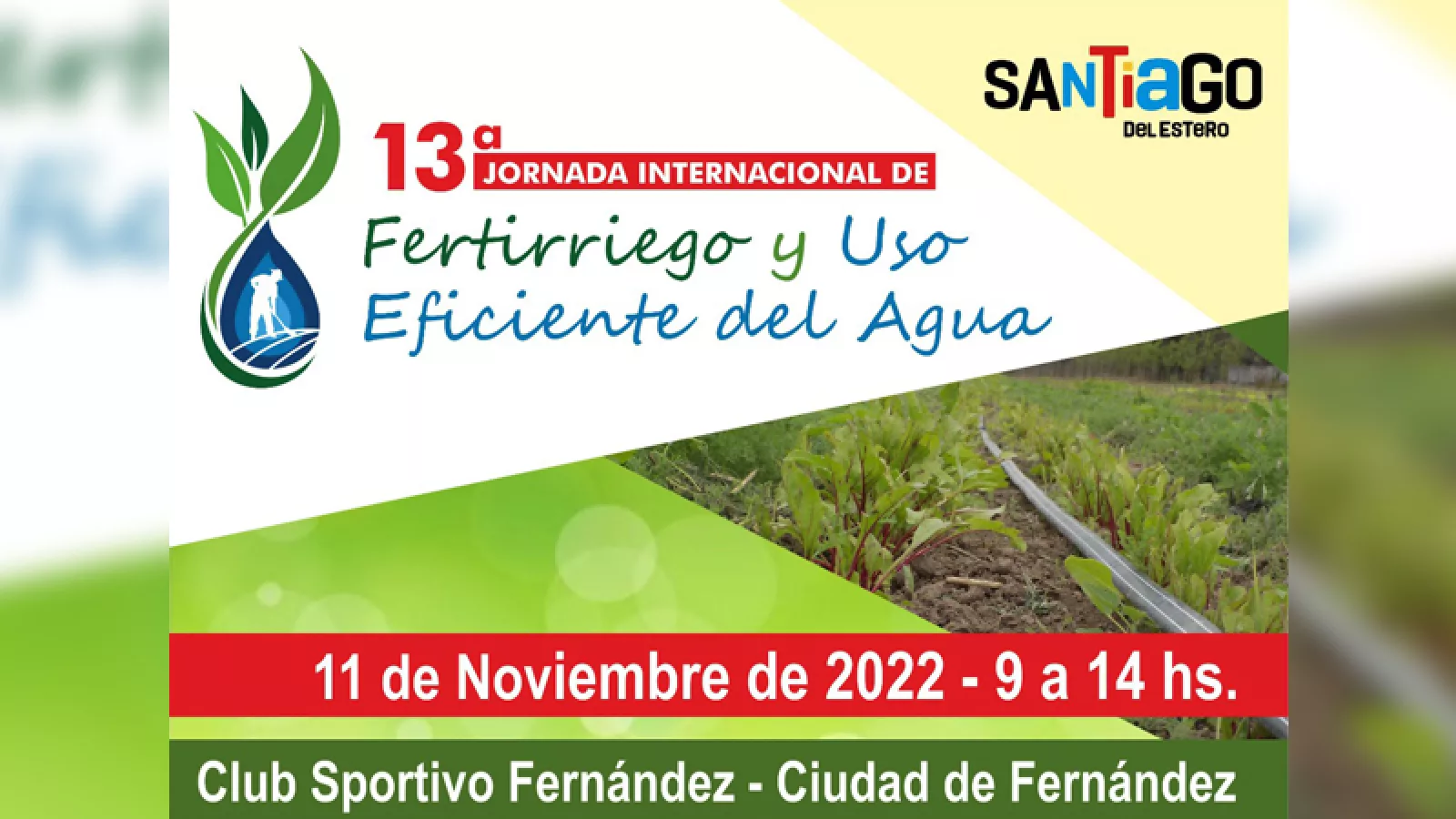 El próximo 11 de noviembre de 9 a 14 horas, se realizará en las instalaciones del Club Sportivo Fernández (departamento Robles) la 13ª Jornada Internacional de Fertirriego y Uso Eficiente del Agua.