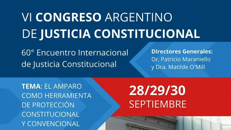 Con la presencia de prestigiosos juristas se realizará del 28 al 30 de septiembre el VI Congreso Argentino de Justicia Constitucional y el 60º Encuentro Internacional de Justicia Constitucional, que contará con la dirección de Patricio Maraniello y Matilde O'Mill.